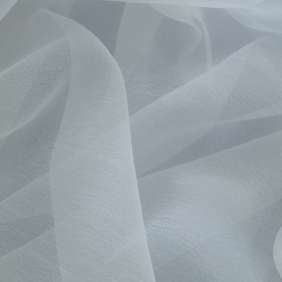 This crashed/crinkle organza fabric is the perfect choice for voluminous wedding dresses, bridal skirts, christening dresses and short wedding dresses. With its transparent structure and matte look, the fabric gives your creations a special depth and sophistication. The crinkle structure ensures elegant, dynamic draping and makes it ideal for decorations such as curtains, bed canopies or other festive accents. The fabric is pleasant to drape and offers an elegant, structured surface that is ideal for both wedding fashion and home decorations.