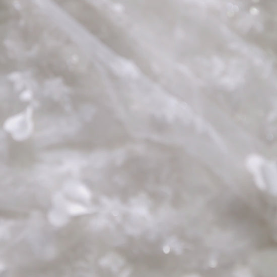 Verleihen Sie Ihrem Hochzeitskleid eine besondere Eleganz mit dieser luxuriösen, handbestickten Brautspitze. Die filigranen, dreidimensionalen Blüten und feinen Verzierungen aus Perlen und Fäden verleihen dem Stoff eine anmutige und elegante Note. Diese exquisite Brautspitze eignet sich hervorragend für Brautkleider, Abendkleider oder Couture-Designs, die nach einem einzigartigen, floralen Akzent verlangen.