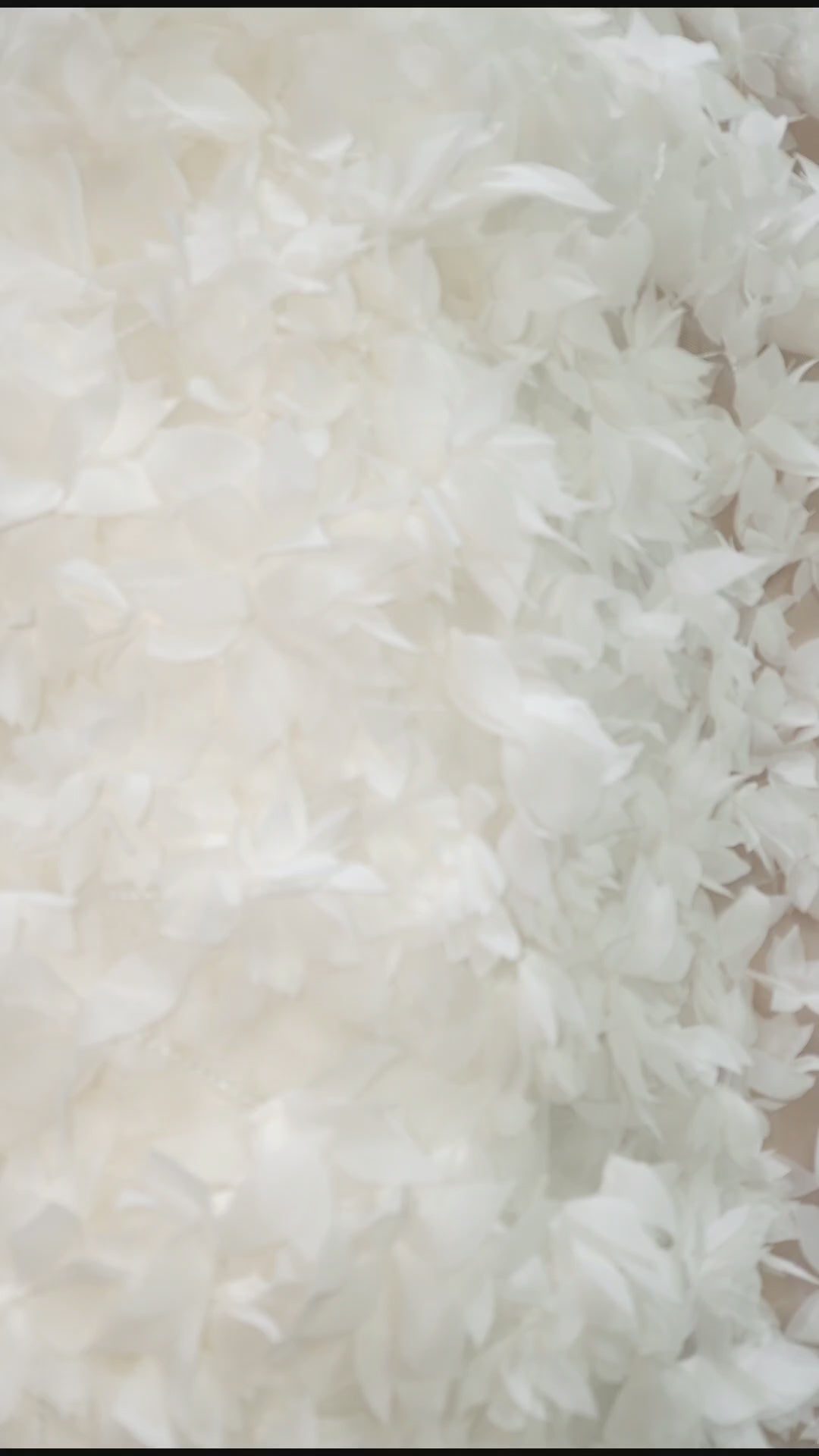 Dieser exquisite Stoff eignet sich ideal für Brautkleider, Couture-Designs und festliche Roben, die durch die beeindruckende Detailtreue der Stickerei und die weiche, aber dennoch stabile Textur des Stoffes eine außergewöhnliche Eleganz erhalten. Der zarte Tüllhintergrund und die handgefertigten Blüten schaffen eine harmonische Balance aus Raffinesse und natürlicher Schönheit.