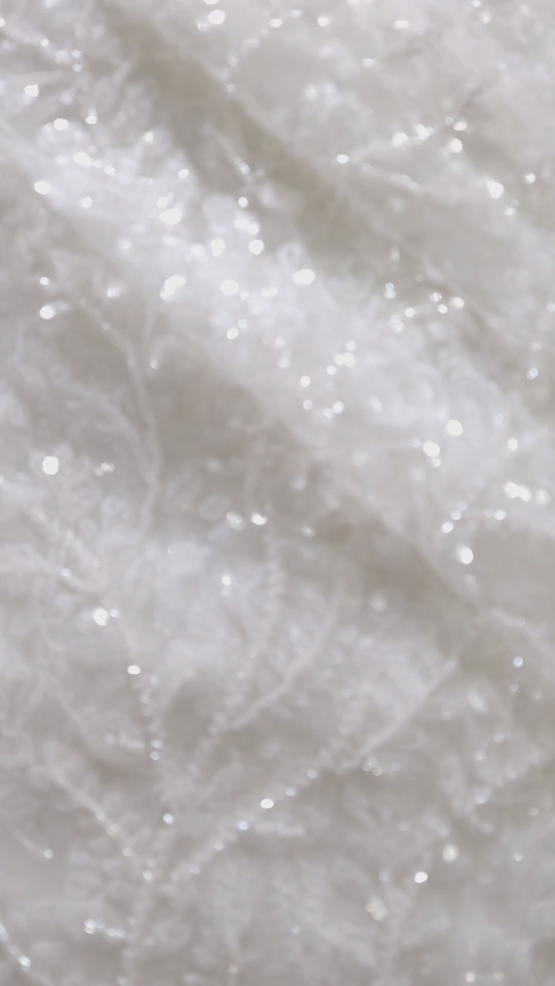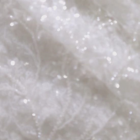 Entdecken Sie unsere exklusive, florale Brautspitze, die mit feinen Perlen- und Glitzerdetails veredelt wurde. Dieser Couture-Spitze eignet sich perfekt für Brautmode, insbesondere für Brautkleider, die mit eleganten, floralen Mustern und einer zarten, modernen Ästhetik betören sollen. Die feinen floralen Applikationen, die kunstvoll von Hand aufgebracht wurden, verleihen dem Stoff eine einzigartige Textur und einen luxuriösen Glanz, ideal für anspruchsvolle Designer und Bräute, die nach einem edlen Look suchen. Auch kann die Spitze für Taufkleider verwendet werden.